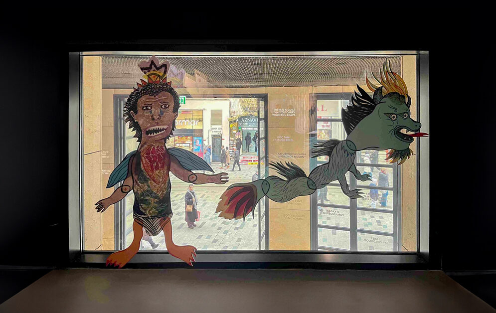 Hilal Can, ışık ve gölge oyununu sadece figürlerle sınırlı tutmuyor. Tepegöz performanslarından edinilen sahneleme dili, sergi alanında genişletilerek izleyicinin fiziksel olarak da deneyimleyebileceği bir atmosfere dönüşüyor. Ürettiği karakterler, İstiklal Caddesi ile görsel ve düşünsel bir bağ kurarak sergi alanının sınırlarını aşmayı amaçlıyor.