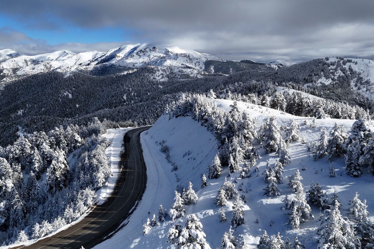 2 bin metre rakımda yer alan geçit, kar yağışının ardından ladin ve çam ormanlarıyla kaplı coğrafyasında seyrine doyumsuz manzaralar oluşturdu.