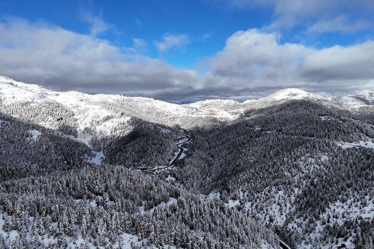 Kar yağışının ardından kristalize olan ağaç dalları ve bembeyaz örtüyle kaplanan dik yamaçlar, havadan çekilen görüntülerle bölgenin doğal güzelliğini bir kez daha kanıtladı.