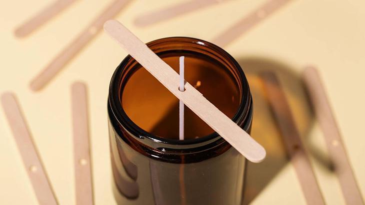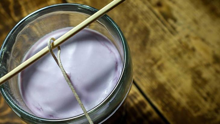 Mum kabınızın ortasına fitili yerleştirin. Fitilin dik durması için tahta çubuk veya mandal yardımıyla sabitleyebilirsiniz.